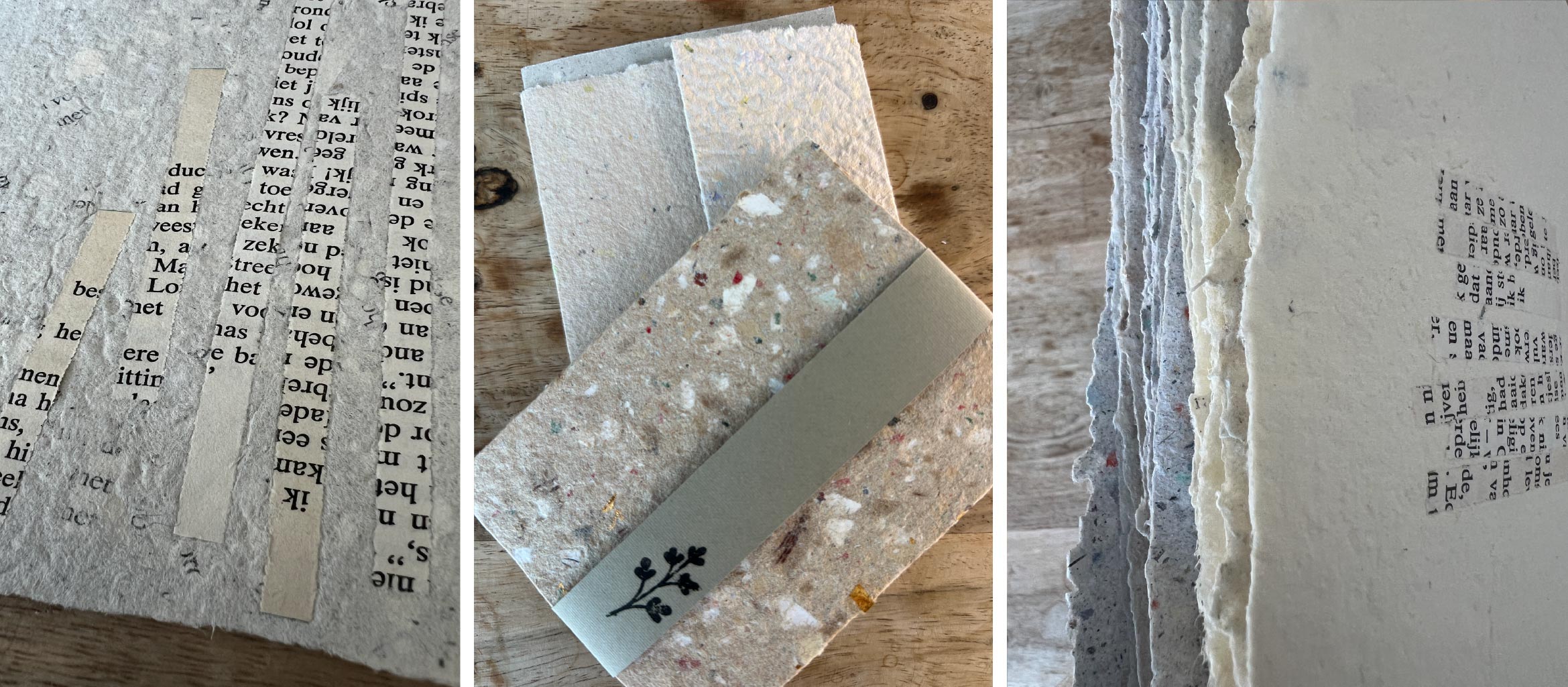 Stap voor stap doorloop je het volledige proces: van oude boekpagina’s en versnipperde letters tot een uniek, handgeschept vel met een serene uitstraling vol letterlijke verhalen. Aan het einde van de workshop ga je naar huis met je eigen letterpapier – perfect voor persoonlijke briefpapier, kaartjes, artistieke projecten of als tastbare herinnering aan een rustige, creatieve namiddag.
