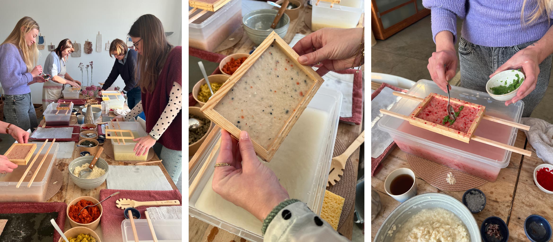 -Je doorloopt het volledige proces en maakt je eigen unieke handgeschepte papier
