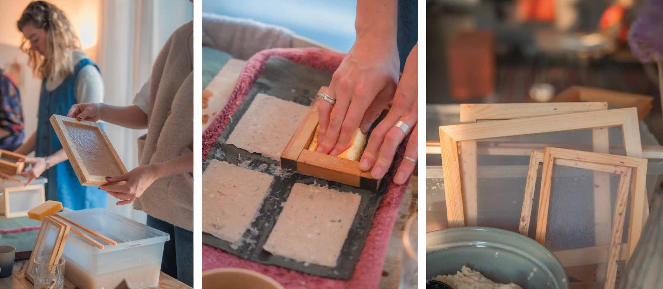 -Je doorloopt het volledige proces en maakt je eigen unieke handgeschepte papier